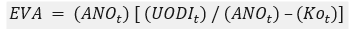 De esta forma el EVA depende del crecimiento, representado por el ANO, y del porcentaje utilidad o pérdida residual, que resulta de la diferencia entre el rendimiento después de impuestos del activo neto operacional y el costo Kot.